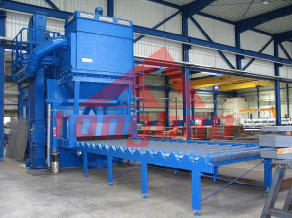 騰博機(jī)械鋼板自動(dòng)清理拋丸機(jī)廣泛應(yīng)用于鋼板的表面處理,對(duì)鋼板進(jìn)行拋丸處理、除銹、去氧化皮等的加工工藝。鋼板或型材經(jīng)過(guò)預(yù)處理可以提高機(jī)械產(chǎn)品和金屬構(gòu)件的抗腐蝕能力,獲得一定粗糙度的光潔表面。提高鋼板的抗疲勞性能,延長(zhǎng)其使用壽命;同時(shí)還可以優(yōu)化鋼材表面工藝制作狀態(tài),有利于數(shù)控切割機(jī)下料和精密落料。